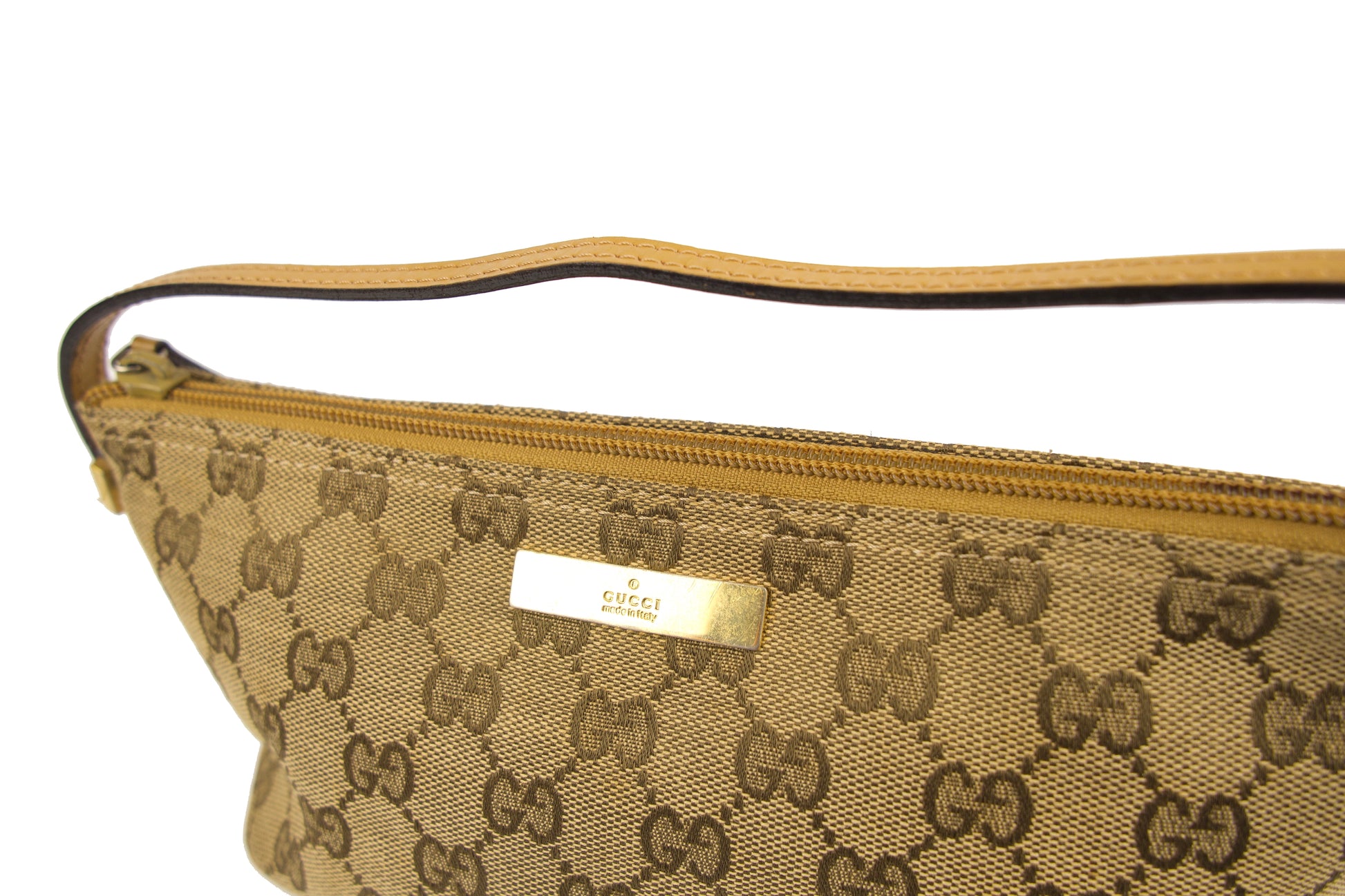 Features: Gold-tone hardware, smooth zip closure, and a sturdy leather shoulder strap. One main compartment, no inner pockets.